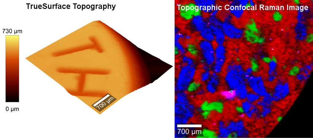 Las imágenes Raman Confocal pueden utilizarse para estudiar la distribución de los componentes de las formulaciones, para caracterizar la homogeneidad de las muestras farmacéuticas, para determinar el estado sólido de fármacos y excipientes y para caracterizar la contaminación y las partículas externas. La información obtenida por microscopía Raman Confocal también es extremadamente útil para el diseño de la sustancia de medicamentos, para el desarrollo de formulaciones sólidas y líquidas, como una herramienta para análisis de procesos y análisis falsos y violación de patente.