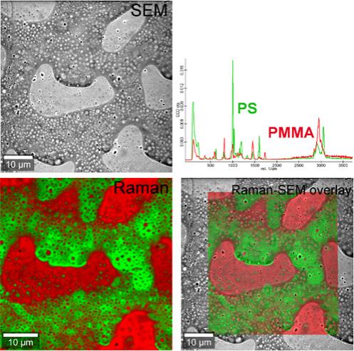 Microscopio RISE (Raman-SEM) de una mezcla de polímeros.