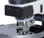 La platina de barrido de largo alcance del microscopio permite inspeccionar obleas de hasta 300 mm (12 pulgadas) y obtener imágenes Raman de gran tamaño. Está equipado con amortiguación de vibraciones y estabilización activa del enfoque para compensar las variaciones topográficas durante las mediciones en grandes áreas o en tiempos de adquisición prolongados. Todos los componentes del microscopio están totalmente automatizados, lo que permite su control remoto y la aplicación de procedimientos de medición estándar.